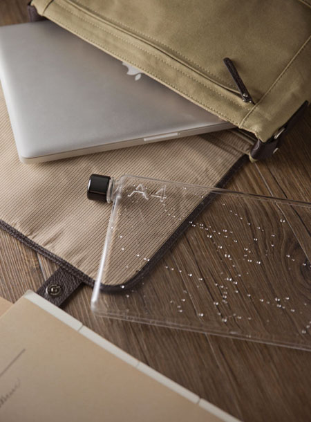 從外觀來看,memobottle 像是一本書,你可以把它和其它書放到一起,或者和筆記本一起放到背包里。