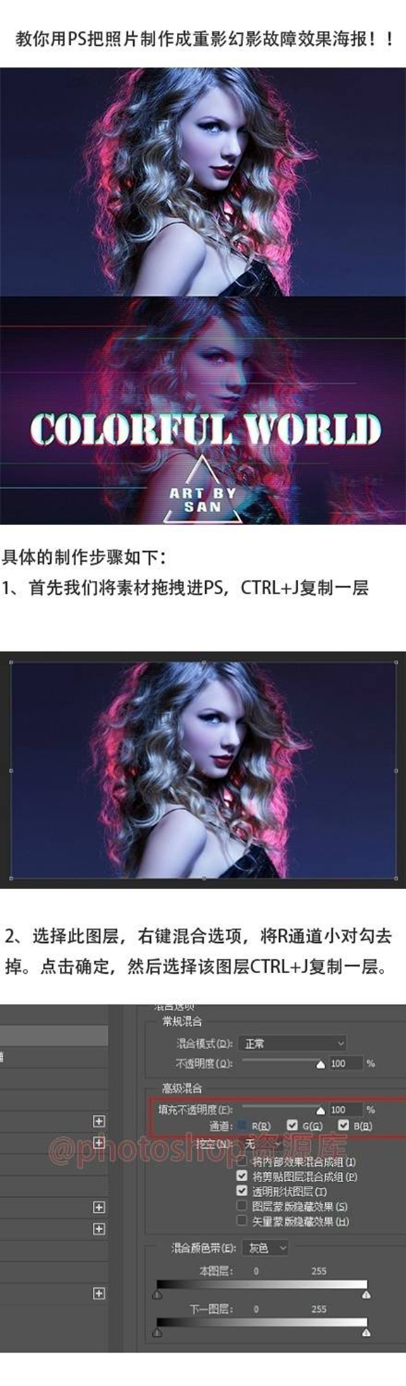 首頁 > 素材教程 > 正文 資訊 設(shè)計訪談 設(shè)計賽訊 藝術(shù)名家 青年藝術(shù)家 視頻 素材教程 藝術(shù)展覽 設(shè)計志 PS教你制作成重影幻影故障效果海報圖 發(fā)布: 2018-05-17 00:00 | 作者:你們的三先生 | 來源: ps資源庫 PS教你制作成重影幻影故障效果海報圖!快來看吧~ (編輯:彭嘉萱)