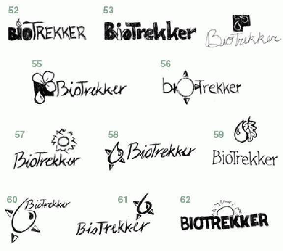 花上一兩個(gè)小時(shí)隨意畫一畫,得到多種備選方案。這也是設(shè)計(jì)中非常重要的一步。在用電腦制作之前,在紙上畫一畫能夠節(jié)省很多時(shí)間。雖然在電腦上也可以畫草圖,但在紙上描繪頭腦中的想法要快的多。在bioTrekker Logo 草圖設(shè)計(jì) 中,設(shè)計(jì)師Karley Barrett展示了在logo設(shè)計(jì)過程中草圖的大量使用。她構(gòu)思了60多種備選方案,然后從中進(jìn)行進(jìn)一步的篩選。Barrett構(gòu)思圖像、排版和布局的過程是非常有趣的。她將多種想法畫出來,然后尋找最佳的方案。因?yàn)閘ogo的草圖是非常小的,因些工作進(jìn)度很快,可以在較短的時(shí)間畫出各種想法。