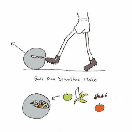 踢球式奶昔制作器,只需將原材料放進(jìn)裝置直至踢爛即可