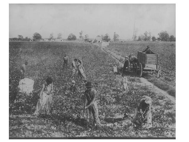 棉花從植物中采摘后,纖維必須從種子中分離出來。這是用棉花杜松子酒做的。“軋棉機”不僅將纖維從種子中分離出來,還可以將棉花打包。美國南部各州生產著世界上一半以上的棉花,這張照片展示了阿拉巴馬州蒙哥馬任市的一個公共交易場所,那里的農民帶著一捆捆棉花來賣。他們都在自己的農場里種植棉花,然后把種子摘掉,把棉花打成捆子,來這里進行交易。在美國南方,把棉花帶到最近的城鎮去賣是一種普遍的習俗。人們可以看到,這幅畫面中,幾乎所有的人都是黑人。阿拉巴馬州有很多的黑人。照片中看到的幾個白人,在馬車中行走,他們可能是買家。每個人都帶著一把鋒利的刀,用它“取樣”包。他們在套袋中大刀闊斧,掏出一把棉花,看了看,并說明了價格。農場主通常把最干凈、最上等的棉花放在外面作為樣品,買方知道這是必然的,所以洽談的過程通常只是一場鬧劇。目前南方的棉花交易,幾乎全部都在中間商手中。在其它地區,農民并不直接將棉花賣給制造商,而是賣給投機者。他們試圖在價格較低時向農民購買棉花,而在價格較高時將棉花賣給工廠。這些中間商通常也是食品雜貨商。貧窮的農民,特別是黑人,很少有人能夠自己持有棉花等待價格上漲,因為他們馬上需要錢花。因此,許多農民直接出售,而當棉花價格上漲時,中間商往往賺到大筆錢。