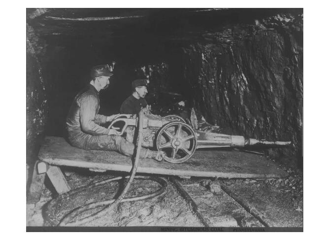 賓夕法尼亞州開采煙煤這張照片顯示,一位煤礦工人和他的助手在一條隧道里工作,礦工正在用壓縮空氣鉆機在煤脈工作面的下邊緣鉆孔,壓縮空氣是通過緊固在機器上的軟管提供的。一次會在幾個這樣的孔內填裝爆炸火藥,爆破后使大量的煤松動。煤炭在礦脈中,是通過切割和“分解”而獲得的。通過這種方式,它可以從上面向下移動到更大的部分。煤礦以前完全是手工作業的,礦工們用鎬和鏟子把煤分解,然后裝在車上。爆破用的孔,是用手鉆而不是用機器鉆的。目前,許多類型的采煤機比傳統的采煤機能更快地完成大量的工作,而且碎成小塊的煤炭少,浪費的煤也就較少。一些采煤機是由壓縮空氣驅動的,另一些是靠電力驅動的。煤將裝載在礦車上,而礦車行駛在前景所見的狹窄軌道上。因此,它將被運到主線,然后被送到地面。在一些礦場里,汽車是由電動礦用機車牽引的,但在大多數礦井里,它們是由騾子牽引的。赤裸裸的燈安裝在礦工的帽子上。一些礦井有危險的爆炸氣體(沼氣),礦工必須使用安全燈。在這些燈中,火焰被鐵絲網包圍,許多礦井都有電燈照明,但在實際的煤分解工作進行中的地方,很少能使用它們。幾乎所有的礦井都是通過大型水泵和風機提供新鮮空氣的,將新鮮空氣吹到礦井的各個部分,從而消除了由于工人的呼吸、煤的分解、爆炸中的粉末爆炸等原因而產生的各種惡臭氣體。大量木材被用于礦山,以支撐隧道的屋頂,并防止巖石從上面掉下來。除此之外,還留下了大量的煤作為支撐。拆除這些煤的“柱子”是非常危險的工作,在它們被拿走的地方,有時會發生塌陷,影響到地表上許多英畝的土地。除了生產幾乎所有無煙煤外,賓夕法尼亞州也是這個國家煙煤生產的領頭羊。