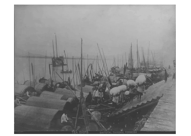 圖為一支船隊將茶葉從鄉間運到福爾摩沙港口。在這個國家,茶葉被采摘、發酵,用木炭火烘干,然后分類。茶葉在全國各地都是這樣加工出來的,它必須干燥或“燒制凱恩”才能安全出口。因此,所展示的大袋在屬于出口商的工廠中被清空。在這里,茶又被“燒”了幾個小時,重新包裝在裝有薄薄的金屬板的盒子里。最好的茶是精心裝在泡桐木盒里的,根本不出口,而是留著出售給東亞富裕的人。福爾摩沙茶大多是烏龍茶,這張圖很好地展示了福爾摩沙船的類型。他們像中國的船,而不是日本的,但竹竿、巨大的單帆和寬的船,是東南亞大多數人常見的。