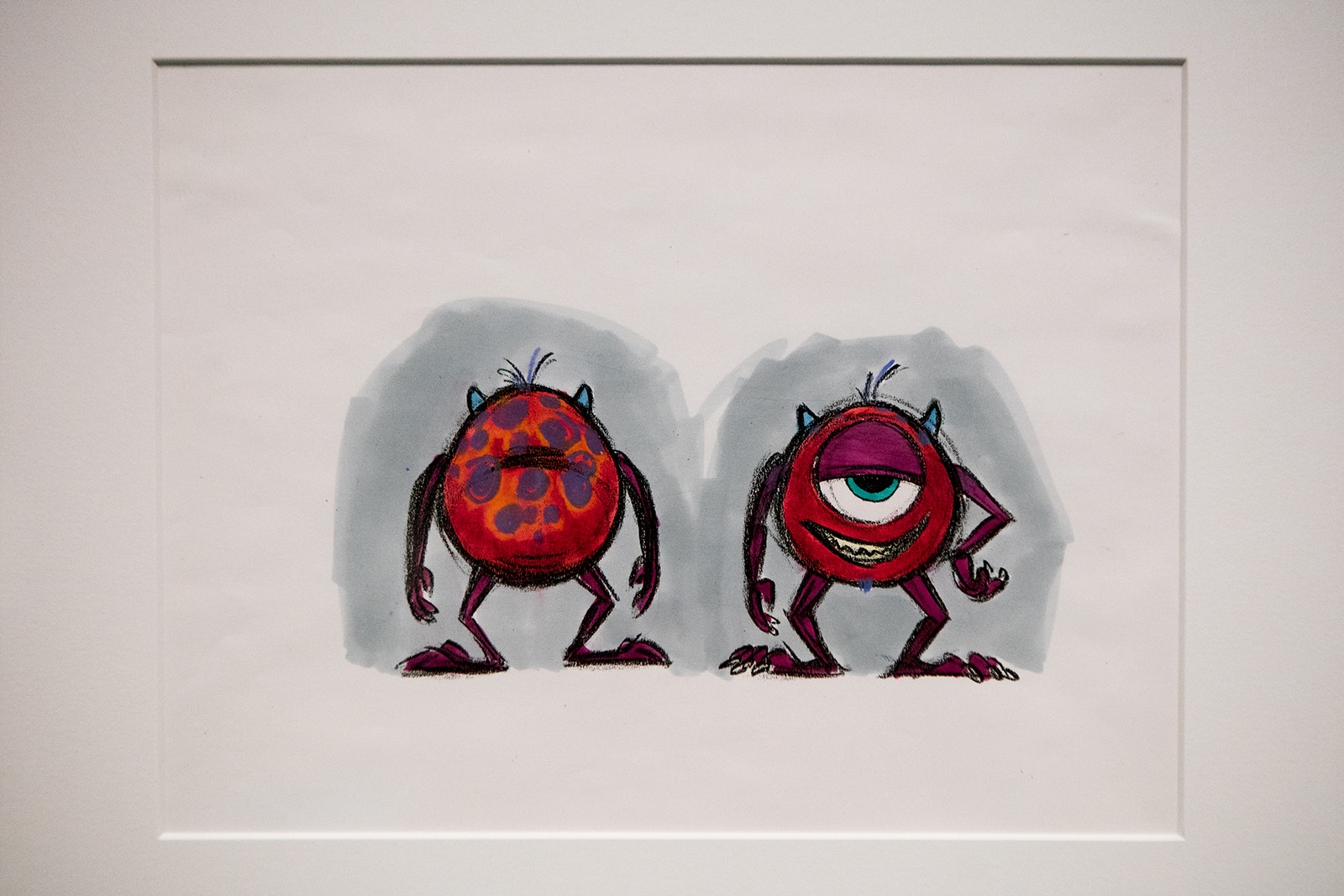 在 Pixar 的動畫作品中,《Monster》系列亦都是另一經典作。今回展覽展出了多幅草圖均各具特色,盡顯 Pixar 團隊的豐富想象力。如以簡單的筆觸再填上顏色,即可將《Monster University》內的角色呈現出來,單眼的 Mike Wazowski 原來曾被繪畫成紅色,好讓導演、監制等人為選擇使用哪款顏色作出挑選。更展出畫家繪畫出不同的怪獸造型,展現 Pixar 團隊的豐富想象力!
