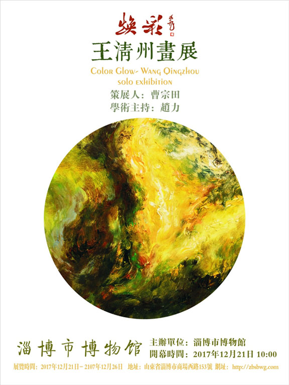 王清州老師的包括油畫在內的展覽作品充分顯現了其多樣性。這些抽象的油畫作品著色豐富,深深地扎根于中國的傳統基調,除此之外還帶有強大的色彩搭配,其色彩語言和油畫自身的特色營造出和諧的創作環境。油畫中寫意性的描寫,有時可以是一處山水,一片花卉,也可能是創作者內在思想的一種即興發揮,這種揮灑自如正是來源于其雄厚的書法功底。許多油畫是通過肌理的方式來表現強勁的構圖力量,這種色彩和構圖的方法結合使得畫面很顯成熟,從這個意義上來說,王清州老師也從歷史文化和西方的傳統里面,把新的繪畫語言發揚光大。這條中西結合之路從二十世紀以來一直在重復,但遠未結束,只是剛剛開始。