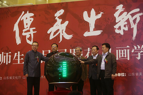 山東省文化廳副廳長王廷琦,山東省文學藝術界聯合會黨組書記于欽彥,山東省文學藝術界聯合會主席、山東工藝美術學院院長潘魯生,大眾報業集團社長梁國典,山東省文聯副主席、黨組成員姬德君,山東省文聯副主席、山東畫院院長孔維克,山東省文聯副主席、省書協主席顧亞龍,山東省文聯副主席、省美協副主席楊楓,山東省女書畫家協會名譽主席、山東省美術家協會顧問單應桂,山東省美協顧問丁寧原,山東省美協名譽主席曾昭明,以及來自山東省美協、濟南畫院、山東藝術學院教授、濟南市文聯、山東財經大學等領導和藝術家以及企業界、畫廊界代表,我校黨委副書記楊新力,黨委副書記、紀委書記裴新鋒,副院長李新、苗登宇出席開幕式。開幕式由山東文藝評論家協會副主席支英琦主持。
