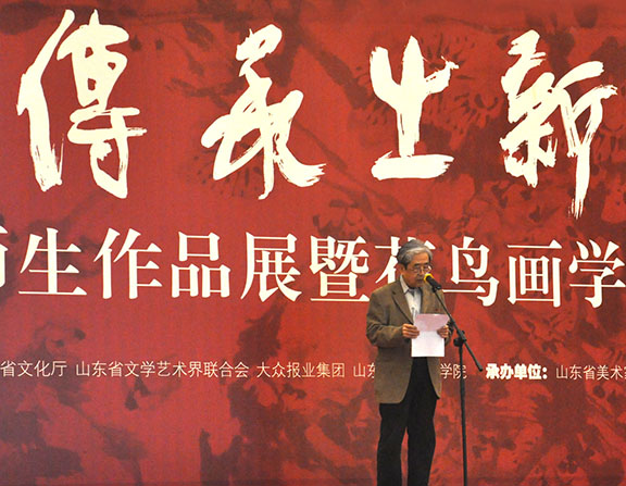 山東省文化廳副廳長王廷琦首先致辭。他指出,山東是美術大省,正在向美術強省邁進,這時最需要有幾位領軍人物,擔負重任。郭志光先生就是其中眾望所歸的一位,是國內屈指可數的花鳥畫大家。他希望郭志光先生等山東名家保持旺盛的創作力,在全國美術界形成越來越大的影響,為山東走向美術強省做出更大貢獻。