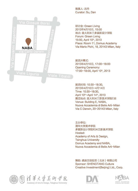 受意大利naba新美術學院和domus設計學院邀請,清華大學美術學院與naba新美術學院師生設計作品展,于2013年4月10至14日在意大利米蘭naba新美術學院展廳舉行。