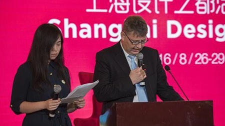 8月27日,德國駐中國上海總領事館副領事J?rn Bei?ert先生參觀城市生態館德國綠色產品獎(Green Product Award)的展品并在可持續創新設計論壇中致詞。此次論壇活動以國際最新的可持續設計為導向,結合中國和歐洲的可持續設計領域發展現狀和市場需求,通過展示最新的可持續設計領域成果,以及中外專家及優秀產品設計師的對話,普及及推廣可持續科技及產品,促進中外企業交流及合作。