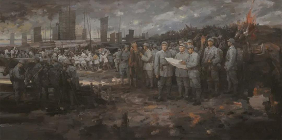 路璋、 陳國(guó)力、 張志強(qiáng) -《劉鄧大軍過(guò)黃河》-油畫(huà)