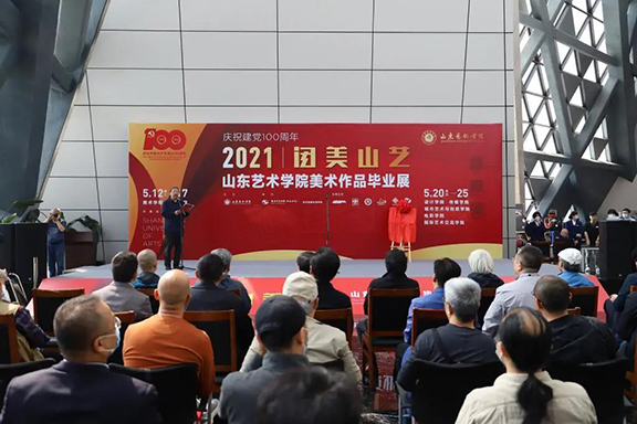 5月12日,慶祝建黨100周年——2021“閎美山藝”山東藝術學院美術作品畢業展開幕式在濟南市美術館舉行。