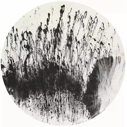 他畫殘荷意象,闡釋“線”與“墨”所能傳達的心緒境界,充滿了對儒、道、釋傳統價值的重新發現和認知;他探索抽象的水墨語言,大膽嘗試對外來觀念、媒介、方法的選擇和改造,形成的是當代東方價值觀,表達的是中國藝術經驗。能在一點一線中見方圓,在一波三折中承接宇宙蒙養;酣暢的筆墨運動,蘊含著漢唐氣象;黑白灰關系的妙用,承載著心靈品質的烙印;枯濕濃淡的交錯,流溢著楚人的歌舞節奏;價值取向的人文哲思,是審美判斷的價值尺度。這樣的語境修煉如能彌久,必能使藝術語境爐火純青。