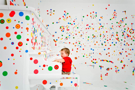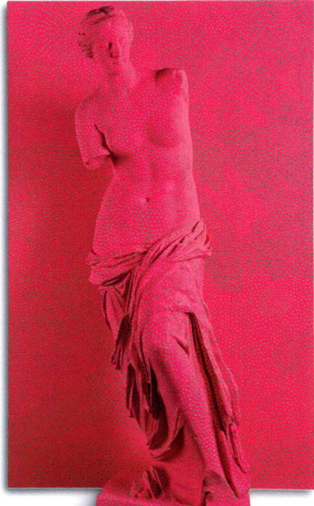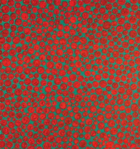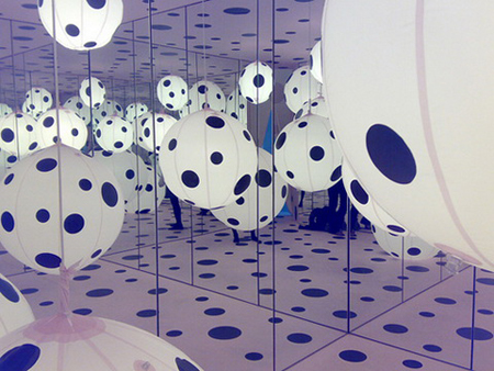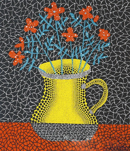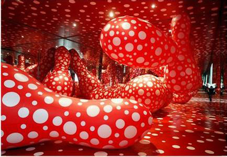 草間彌生的意義在于她的病,是精神病成就了她的藝術(shù)還有盛名,同時也相信她是利用了她的精神病。如果單獨拿出草間彌生的作品,那被圓點彌滿的裝置和空間,那用圓點畫成的瓶花和大南瓜,我們從作品中讀到的更多是裝飾性:有點東方的神秘氣質(zhì)或者有點神經(jīng)質(zhì),除此之外沒有其他。但是,恰恰是草間彌生的精神病史,她的怪異瘋狂的行為,她把自己變成了一個傳奇,所以她的裝飾畫也具有了不同尋常的意義。