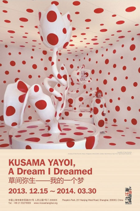 上海當(dāng)代藝術(shù)館于2013年底帶來當(dāng)代藝術(shù)前衛(wèi)女王草間彌生在中國的首次大型展覽。本次上海當(dāng)代藝術(shù)館為亞洲巡展中中國地區(qū)的唯一一站,而享譽世界的日本藝術(shù)家草間彌生在當(dāng)代藝術(shù)圈內(nèi)獲得高度評價外,她的作品也為普通觀眾認同,并被全世界100余所美術(shù)館收藏。