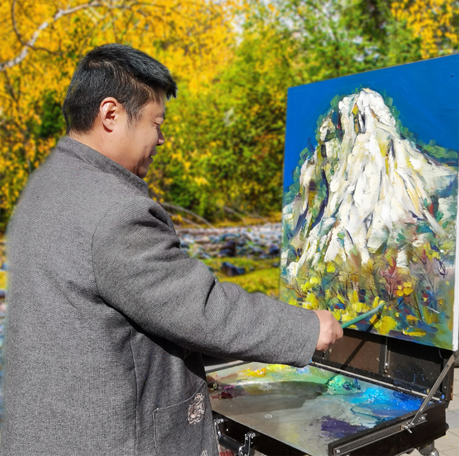 作者在三十多年的從教生涯中,繼承中國傳統(tǒng)山水畫造境所蘊含的文化哲學審美方向和筆墨語言,堅持外師造化和搜妙創(chuàng)真,并將歐洲油畫印象派所倡導的“光”“色”作為繪畫追求的理想,堅持走出畫室,描繪自然景物,以迅速的手法把握瞬間的印象,使畫面呈現出新鮮生動的感覺。長期致力于風景油畫寫生與創(chuàng)作、水墨山水寫生與創(chuàng)作,并進行油畫和藝術設計所蘊含的形式美與時尚性深度融合的探索。將歐洲油畫描繪自然的直觀生動性、油畫色彩的豐富細膩性與中國傳統(tǒng)藝術精神、當代人類審美理想和需求相結合。把握時代脈搏,積極探索,守正創(chuàng)新,從不同角度謳歌了黨的豐功偉績和表達了對祖國新時代精神的禮贊,對中國共產黨成立100周年和新中國成立72周年的深深祝福。