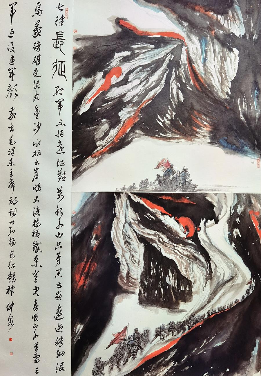 畫展作者作為一名有著36年黨齡的共產黨員和高校藝術教育工作者,積極踐行“專業(yè)+思政”的藝術教育工作理念,堅持為時代立傳、為時代畫像、為時代明德的文化擔當和培根鑄魂、守正創(chuàng)新的藝術追求。主題創(chuàng)作緊扣中國共產黨成立100周年的時代主題,汲取傳統(tǒng)文脈的思想精華,認真研讀黨史中的紅色基因和精神譜系,通過藝術創(chuàng)新和潤物無聲的藝術手段生動地創(chuàng)作出具有思想引領和文化傳承的藝術作品。