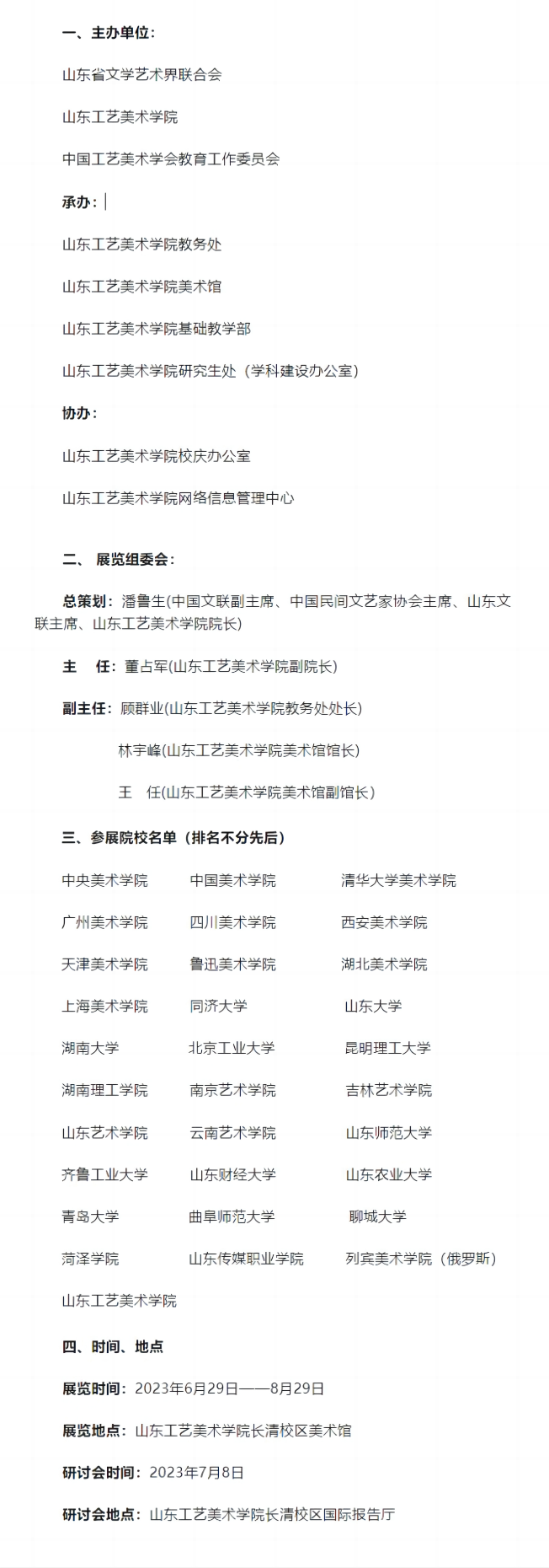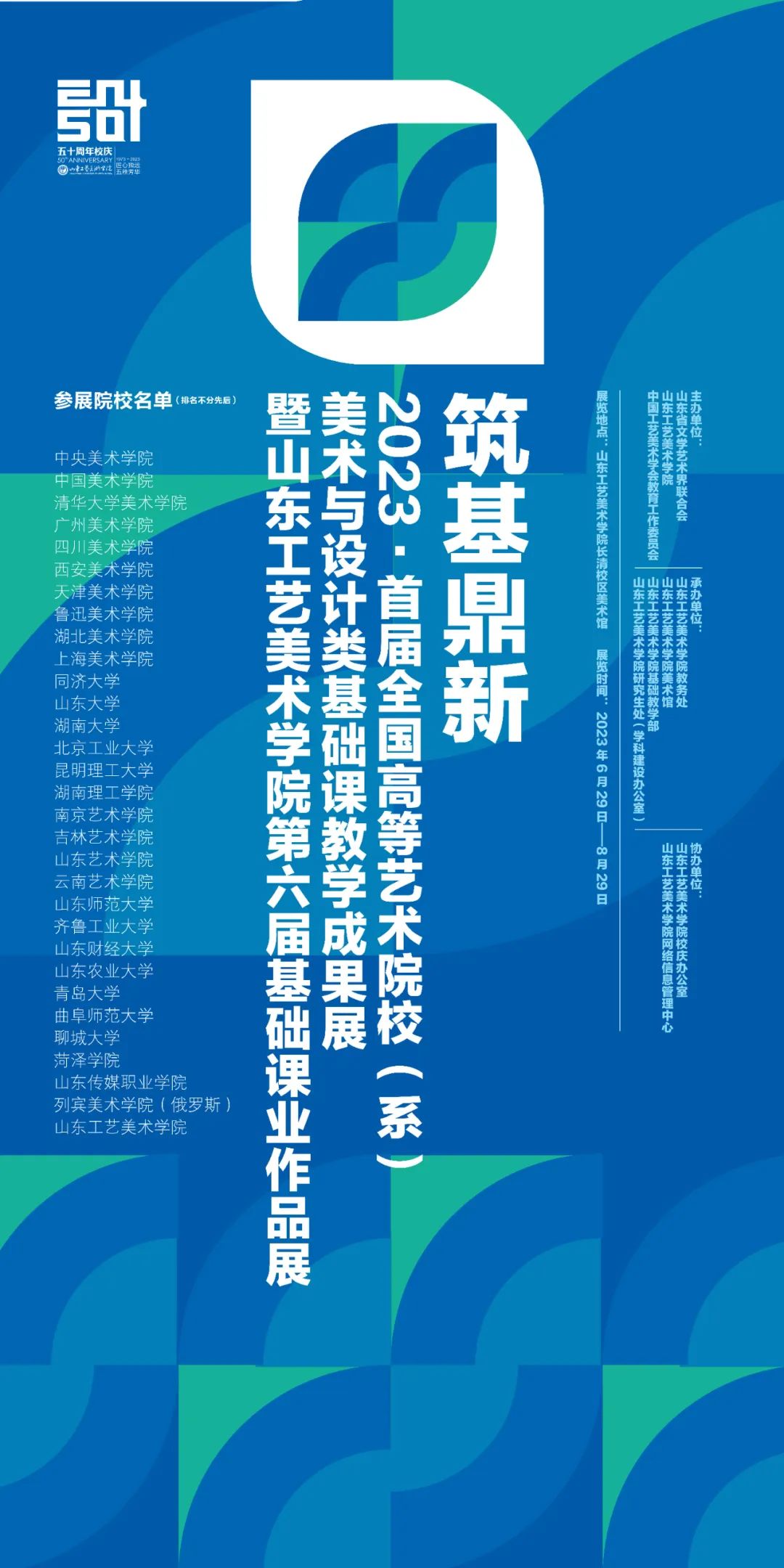 《筑基鼎新——首屆全國高等藝術(shù)院校(系)美術(shù)與設(shè)計類基礎(chǔ)課教學(xué)成果作品展暨山東工藝美術(shù)學(xué)院第六屆基礎(chǔ)課業(yè)作品展》,征集到31所院校基礎(chǔ)課教學(xué)作品(包括我校第六屆基礎(chǔ)課業(yè)展作品)共計1200余件,最后經(jīng)展覽組委會嚴格評選,共展出優(yōu)秀作品400余件。共襄大展的專業(yè)美術(shù)院校有中央美術(shù)學(xué)院、中國美術(shù)學(xué)院、清華大學(xué)美術(shù)學(xué)院、廣州美術(shù)學(xué)院、四川美術(shù)學(xué)院、天津美術(shù)學(xué)院、西安美術(shù)學(xué)院、魯迅美術(shù)學(xué)院、湖北美術(shù)學(xué)院、上海美術(shù)學(xué)院等,綜合類高校的院系有同濟大學(xué)、山東大學(xué)、湖南大學(xué)、北京工業(yè)大學(xué)、昆明理工大學(xué)、山東師范大學(xué)、齊魯工業(yè)大學(xué)、山東財經(jīng)大學(xué)、曲阜師范大學(xué)、青島大學(xué)、山東農(nóng)業(yè)大學(xué)、聊城大學(xué)、菏澤學(xué)院、湖南理工學(xué)院等,綜合類藝術(shù)院校有南京藝術(shù)學(xué)院、吉林藝術(shù)學(xué)院、山東藝術(shù)學(xué)院、云南藝術(shù)學(xué)院等以及國外的俄羅斯列賓美術(shù)學(xué)院等。征集作品基本涵蓋和反映出我國新時代美術(shù)與設(shè)計類院系基礎(chǔ)課教學(xué)狀況,既有通識基礎(chǔ)教學(xué)作品,又有專業(yè)基礎(chǔ)教學(xué)作品,基本代表了我國新時代美術(shù)與設(shè)計類基礎(chǔ)課教學(xué)取得的優(yōu)秀成果。