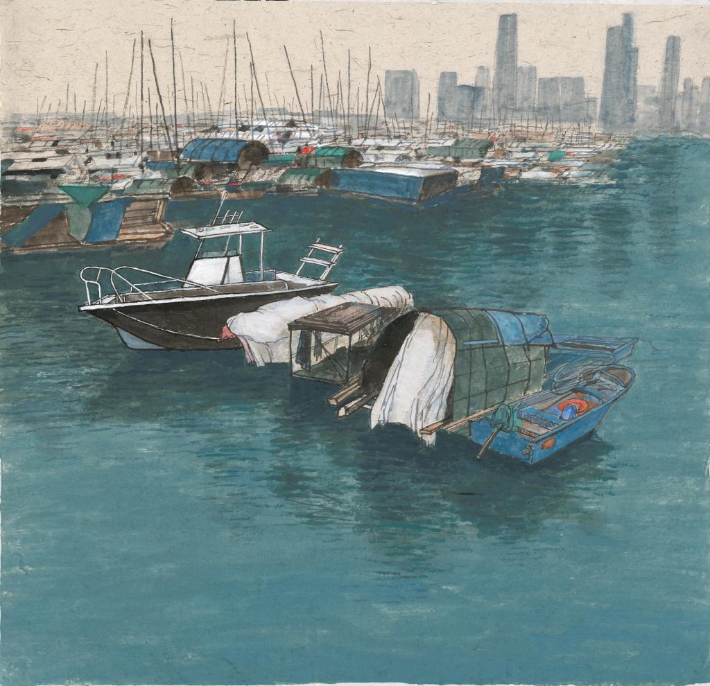 《港·避風(fēng)塘》2022年124x124cm紙本·彩墨 潘魯生