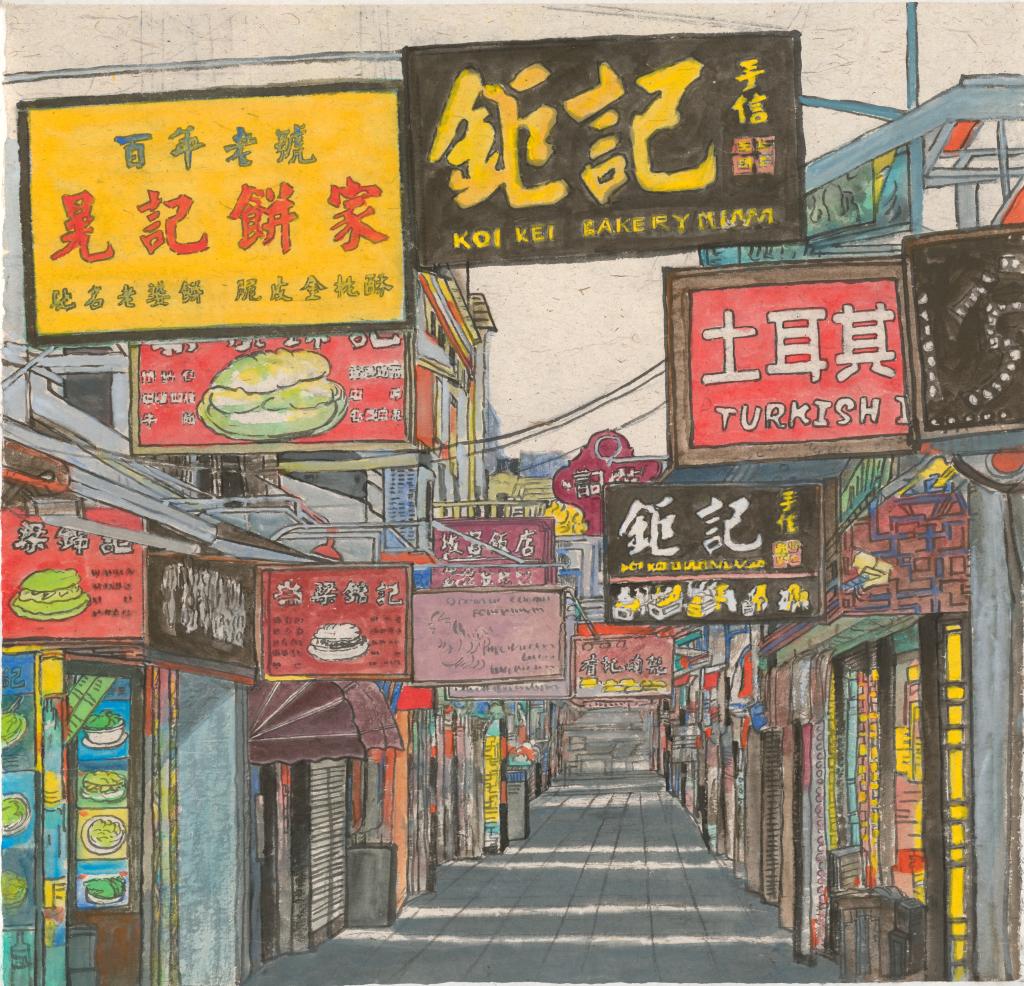 《澳·官也街市》2022年124x124cm紙本·彩墨 潘魯生
