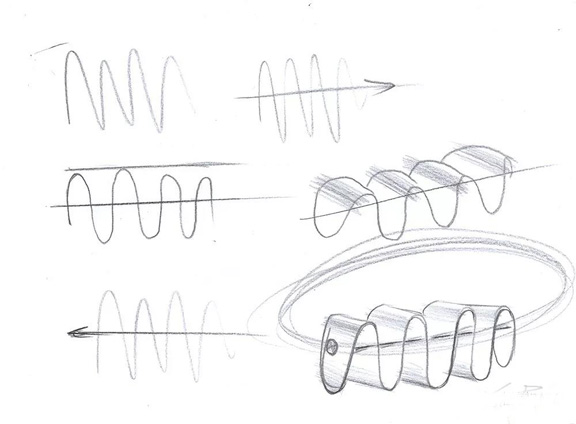 "波浪茶幾“的草圖是作者無意間在紙上隨手畫了一個波浪線,突然感覺這個也是一種自然而幽美的線條,是否可以通過材料-木皮的重組,讓傳統(tǒng)的多層板產生不一樣的優(yōu)美線條?