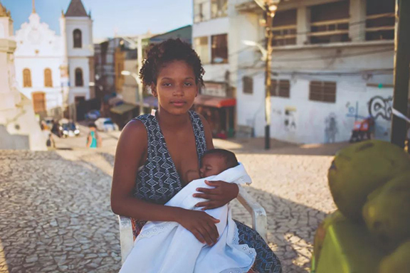 這張圖是米哈埃拉·諾洛茨在巴西的薩爾瓦多拍攝的,畫面中的母親叫拉謝爾,15歲時她便已經成為了一個母親,而孩子的爸爸在她出生幾周前就因幫派斗爭而被殺害了。拉謝爾每天要坐兩小時公交車才能到薩爾瓦多市中心兜售椰汁。有的時候一天都賣不出一杯椰汁,生活難以維持,但即使如此,她還是將最純粹的愛給了她的女兒,在高強度的工作后回到家照顧女兒。