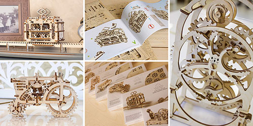 UGEARS推出了一系列木制手工DIY模型。與我們平時所見到的DIY模型所不同的是,僅僅依靠切割木板和橡皮筋就能復制了一列列逼真的動力火車,ugears并不用發條,它只是通過一個個齒輪間的結合,加之橡皮筋做牽引,就有了讓它轉運的動力,并且其中的所有齒輪、連桿等機械結構都是活動的