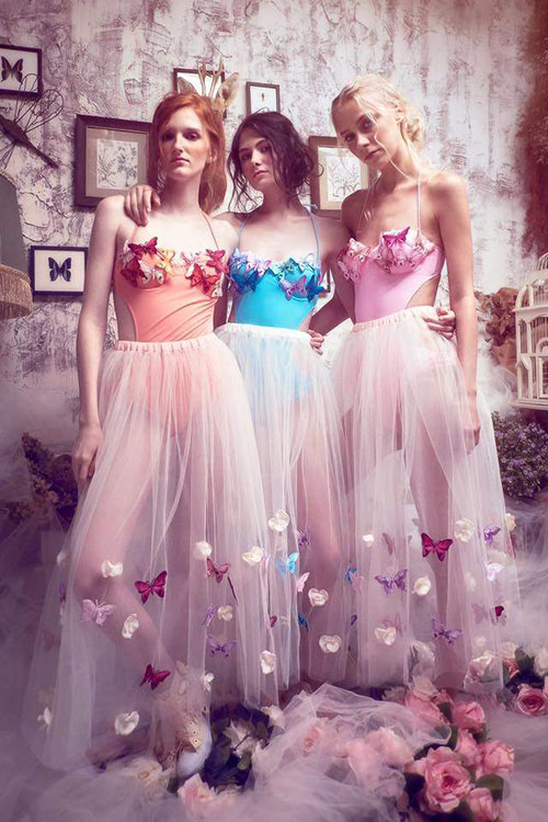 朦朧的薄紗,與立體的花瓣與蝴蝶元素相互映襯,糖果色打底,將朦朧的薄紗更映襯出一種似現非現的效果,比起傳統是什么都看不到的沙龍與性感的三點式泳衣來講,Chuan Pisamai 的這款泳衣,完美的將性感與俏皮融合與一體,巧妙的抓住女生的心。誰還不是小仙女咋地?