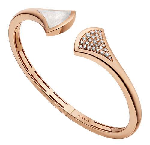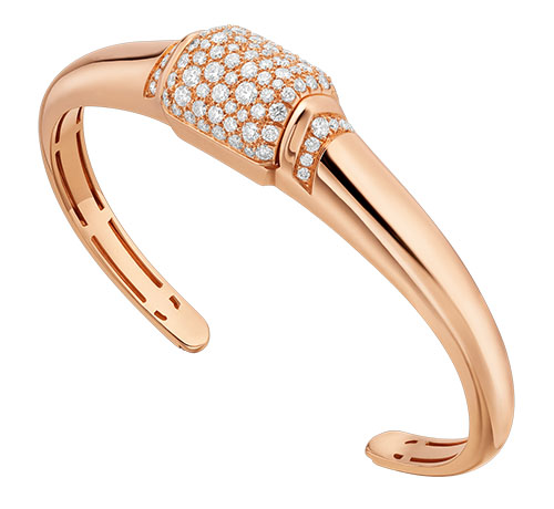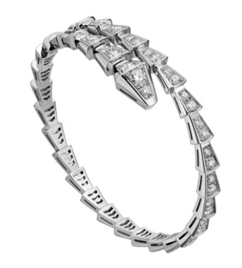 SERPENTI系列,用簡單的幾何體組合規則排列,手環內以線條為基調,像水波紋彰顯奢華優雅,完美演繹出精美的工藝,可以看出對每個細節的悉心關注。