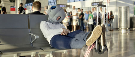 鴕鳥(niǎo)枕的外觀造型奇特,戴上它的人埋頭沉睡時(shí)看起來(lái)就像一只低頭的鴕鳥(niǎo),讓人忍俊不禁。其下方有一個(gè)圓孔,供使用者把頭套進(jìn)去。正面有一個(gè)可露出嘴和鼻子的洞,以便使用者自如呼吸。頂部還有兩個(gè)邊孔,如果使用者想趴在桌子上小憩,就可以把手伸進(jìn)去。