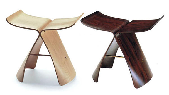 1954年推出的經典設計作品蝴蝶凳讓柳宗理一舉成名,它由兩片彎曲定型的纖維板通過一個軸心反向對稱連接在一起,因外形像一只翩翩起舞的蝴蝶而得名。據說是當年柳宗理無意間用手將溫熱的塑料片彎折出的形狀,呈現出宛如蝴蝶飛舞般的獨特美感,同時跳脫出了平常椅子的制式形態。