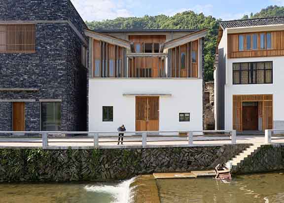 在一次講座中王澍曾提到 他從小長在北京的一個小胡同里。然而,這個胡同在幾年前也被拆除,他與這座城市最后的聯系也被切斷現在許多農村都面臨這隨時被拆除的危險。為了保護農村原有的建筑,王澍進行了實驗性的農村建造。王澍和他的團隊來到了富陽文村。村子里,放眼望去在一座座古樸的建筑中,穿插格外醒目的小洋房。王澍與他的團隊用了三年時間建造了十幾座具有村落特色的房子,使得村子煥發新的生機。