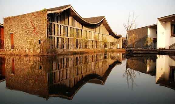 中國美術學院象山校區是王澍的代表作品之一。它坐落于杭州市轉塘鎮,周圍環繞著青山綠水。校區內的建筑并不像我們印象中的傳統建筑,這建筑有著一股獨特的中式味道,一眼看去便知是中式,但叫人說不出哪里中式。建造這座校區的材料大多來源于拆遷所產生的廢品。城市幾乎每天都有房屋被拆除,產生大量廢棄材料。這樣的材料被團隊回收再利用建造了一座世外桃源。