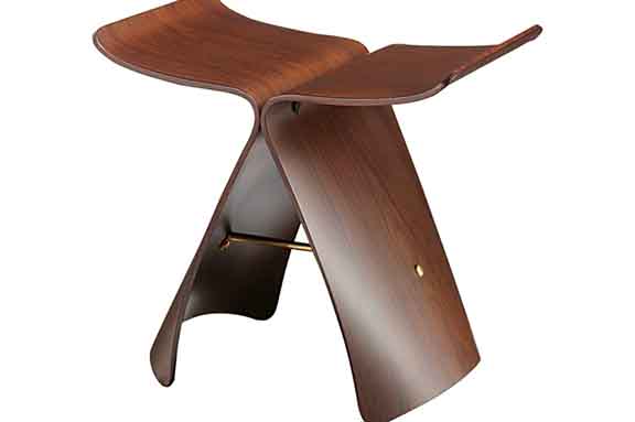 蝴蝶凳是柳宗理于1954年所設計發表的一款作品,也是其最具代表性的作品。顧名思義,蝴蝶凳的造型酷似一只展開翅膀的蝴蝶。柳宗理利用膠合板的彎曲技術制造,使產品展現出一種靈動的美感,就是這簡單的構造配合流暢的線條將日本傳統的美的意境展現的淋漓盡致。