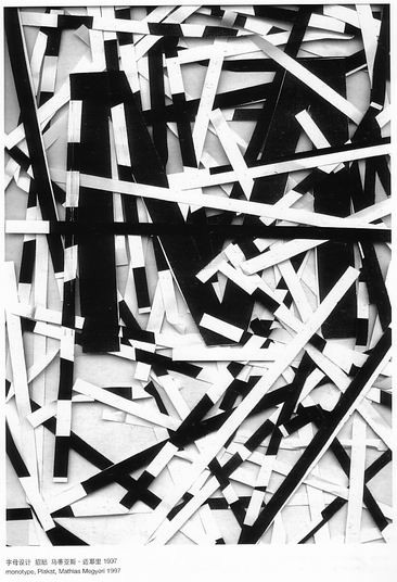 在蘭堡的作品里,我們很容易發現一個規律,那就是蘭堡追求平面之外的視覺效果。通過元素的密集獲得張力凸顯效果是蘭堡嘗試的又一種方法。文化招貼就是蘭堡運用這種方法的典型代表。一幅靜止的平面作品的運動感往往和構成平面作品本身的骨架有關,它的運動方向基本上和構造骨架的主軸方向一致。