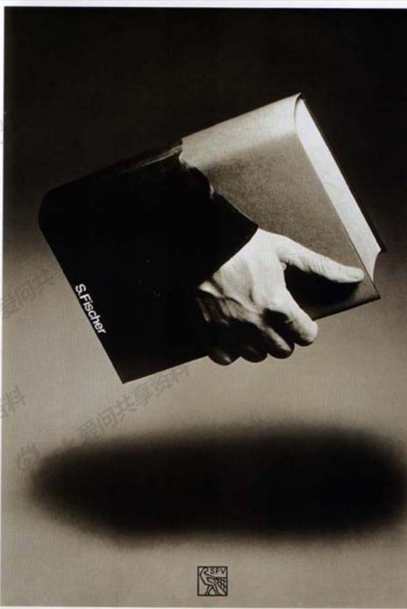 蘭堡的這一作品,圖中書上的手有筆,這只筆將書的一維空間向整幅畫面的三維空間轉化,自然而有力。筆在背景上寫出出版社的名字,宣傳意味油然而生。這種視覺的空間轉換自然地引導觀賞者的視線開始流動最終定格在下面的字母上。這種視覺引導式的宣傳方法讓人過目不忘。