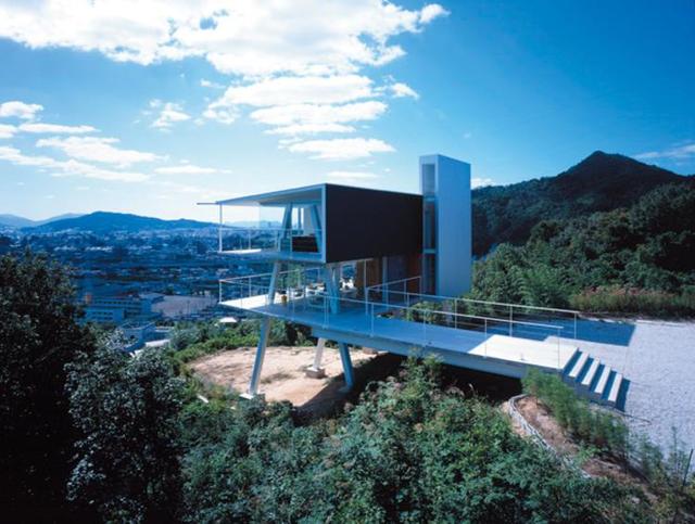 2003年完工的“毘沙門之家”,是谷尻誠(chéng)在業(yè)界嶄露頭角的開(kāi)始。業(yè)主最初的想法是在廣島市北部丘陵地區(qū)的毘沙門臺(tái)一角的坡地上建造一個(gè)融合居住空間的家庭餐廳,但由于坡地地勢(shì)并不適合建造建筑,這讓谷尻誠(chéng)非常的苦惱。于是谷尻誠(chéng)將建筑空間分為兩層,其中樓梯藏在接近平地的一側(cè),并且一樓的就餐區(qū)域在設(shè)計(jì)時(shí)大膽地拋棄了墻面,用了大面積的落地窗,遠(yuǎn)遠(yuǎn)看上去,二樓的部分就像浮在空中一樣。