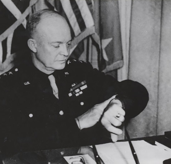 (1945年,艾森豪威爾將軍購買了一枚精鋼表殼豪雅計時碼表)