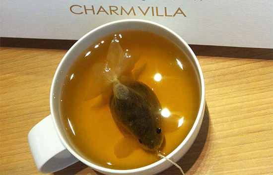 這是一款由臺灣子村莊園Charm Villa設計研發的小金魚茶包,與傳統方形茶包不同的是,這款茶包擁有立體的金魚形象,隨著緩緩注入的水流,白色的小茶包漸漸變至金黃,栩栩如生的尾巴和魚鰭在水中搖曳。