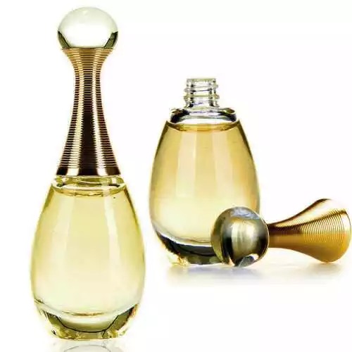 2006年,真我香精 J’adore Parfum瓶頸上的細節更加凹凸精致,引人不禁輕輕撫摸。瓶如香水一般精致,稀有,慷慨。從依蘭的芬芳到摩洛哥玫瑰,無不顯示它璀璨女性感性的氣質。
