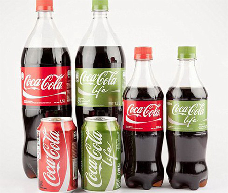2014年8月,可口可樂發(fā)布了新產(chǎn)品Coca-Cola Life,在新產(chǎn)品中可口可樂公司用天然的甜葉菊代替人工合成的阿斯巴甜作為甜味劑。在外包裝方面,可口可樂也打破從上個(gè)世紀(jì)二十年代沿用至今的傳統(tǒng)紅白色包裝,為飲料穿上了象征健康的綠色外衣。據(jù)悉,這款全新的可樂包裝種類有330毫升罐裝、550毫升瓶裝,以及1.75升的大瓶裝。