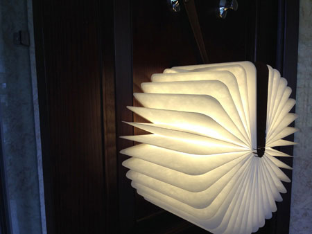 使用時,只需將它像書本一樣翻開,之后它內置的LED燈便會自動發出亮光,最大幾乎能夠照亮360度的范圍,而且擺放方式也十分多樣