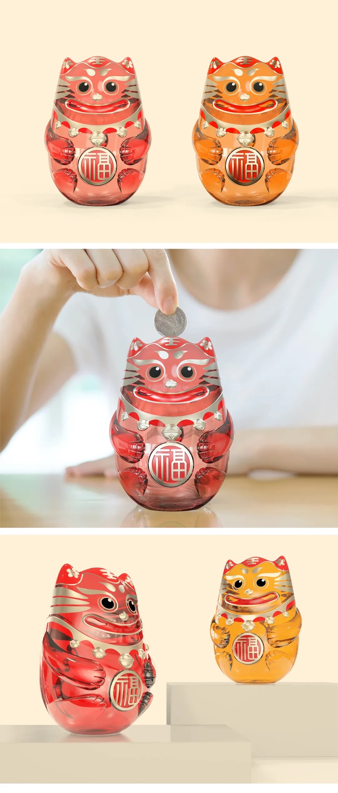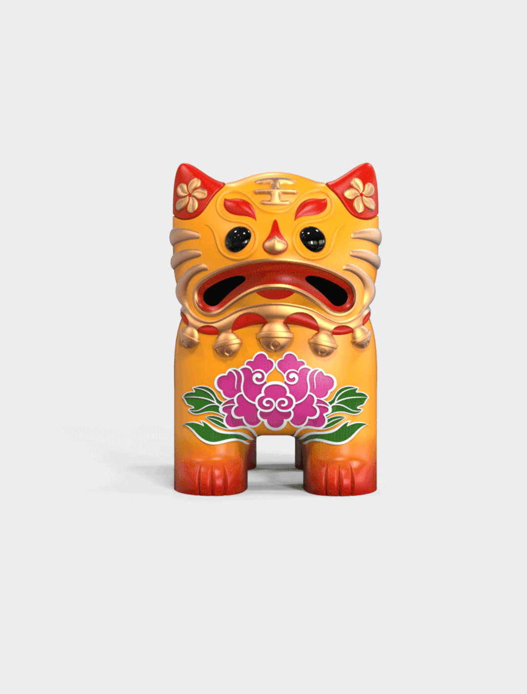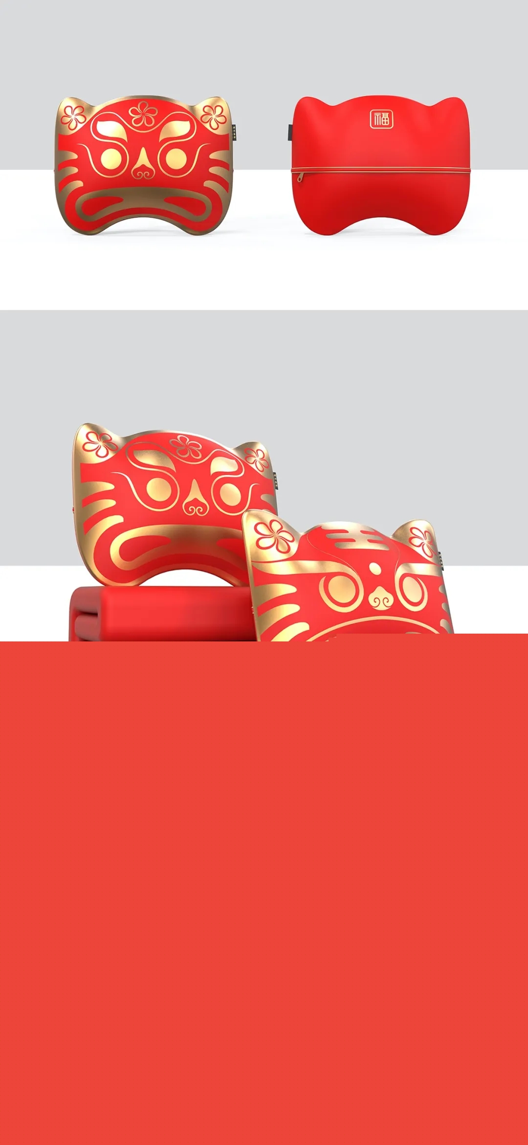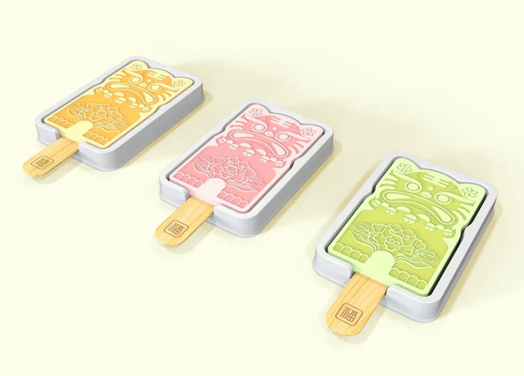 對“尼尼虎IP形象原型設計”的延續型設計,借鑒了“不倒翁”的形態語義,將老虎形態進一步團塊化,憨態可掬,呈現出多喜納福的吉祥寓意。此外,該形象還可向包裝容器、口杯、存錢罐、藍牙音響等文創產品拓展。