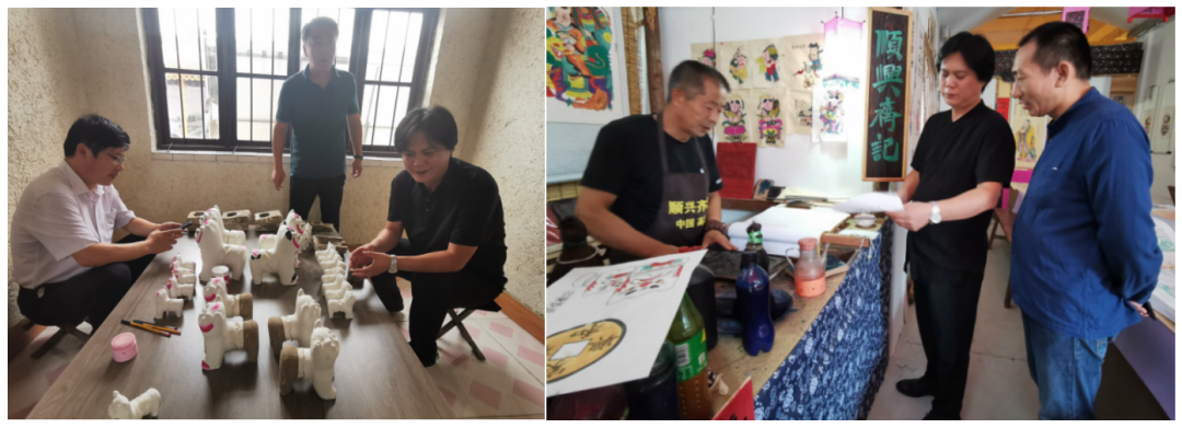 基于此,2021年8月,潘魯生派出山東工藝美術學院文創設計團隊,立足高密傳統手工藝活化設計,再次對高密傳統手工藝進行深入調研。設計團隊先后對聶家莊泥塑、撲灰年畫、木版年畫、民間剪紙等傳承人展開調研,并實地走訪當地企業,摸清當地加工能力。