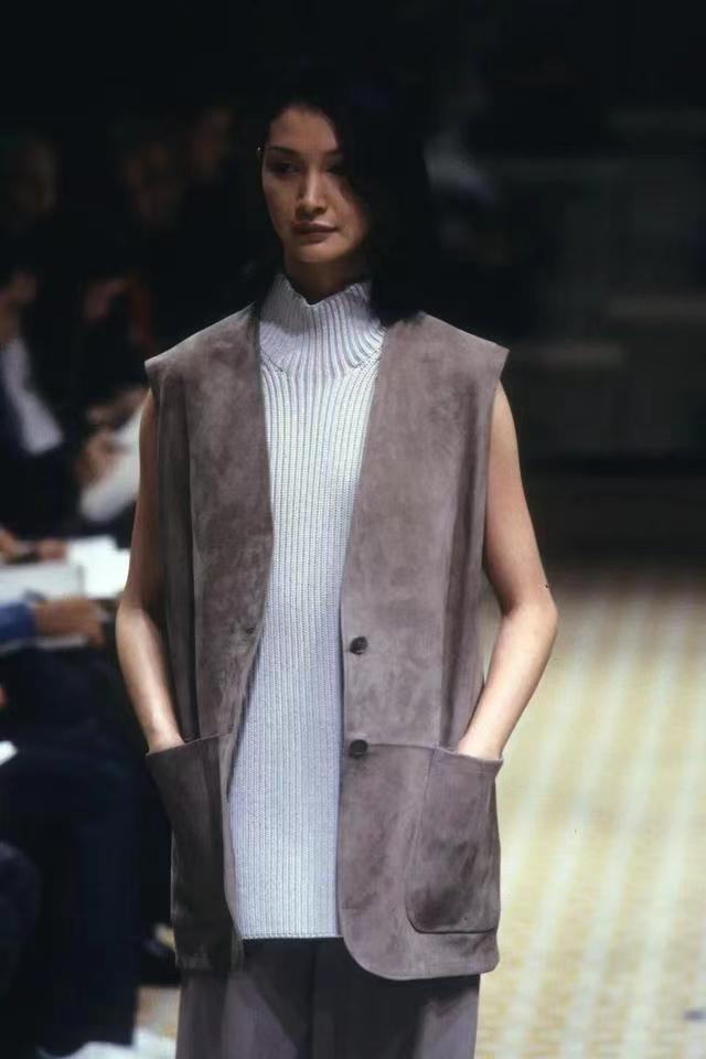 但現實與理想的差距似乎誰也逃不過,品牌的時尚表現出色但商業表現欠缺,1997年面對愛馬仕的邀約,margiela欣然接受地擔任了愛馬仕女裝線的創意總監,一共擔任了6年,在他任職期間,面對大眾的質疑他推出的一系列作品打出了一手好牌,讓人連連叫好。比如98年AW系列中經典的“Vareuse”大深v直開到腰間,性感但又十分休閑舒適,實穿性極強。柔軟的皮革外套長及腳踝,沒有花紋與配色,只有色調,優雅至極,與愛馬仕品牌調性十分貼合,奠基了奢侈品是何為貴氣,直到今天大家所說的“高級感”一詞多多少少有他的功勞。哪怕在十多年之后margiela時期的愛馬仕依舊在二手中古市場備受粉絲喜愛收藏。