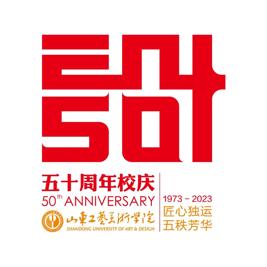 標志主色調采用紅白相間,在傳達出“設計”+“50”理念的同時突出“中國紅”和“中國紋樣”元素,表達了學校50年來,立足中華優秀傳統文化,以“創造性轉化與創新性發展”的理念,堅定為人民而設計的發展宗旨。