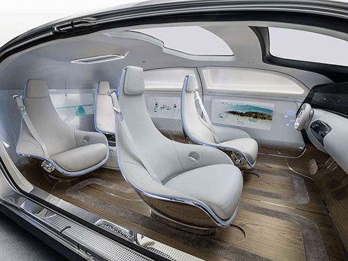 梅賽德斯-奔馳F 015 Luxury in Motion代表了無人駕駛汽車未來的發展趨勢。外觀方面,它擁有非同尋常的比例(長/寬/高:5220/2018/1524毫米)以及極具科幻色彩的造型:貼近地面的前臉、流線型車頂線條、平坦的前風擋玻璃與同樣貼近路面的車尾,賦予F 015 Luxury in Motion修長且極其動感的輪廓。長達3610毫米的軸距,加上極短的前后懸,為乘客打造出開闊的車內空間。