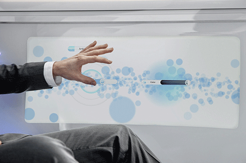 這款無人駕駛概念車的另一大亮點之一是汽車、車內乘客與車外環境的持續信息交互。根據車內座椅位置的不同,儀表板、后排以及車門側面飾板中完美集成了6個顯示屏幕,使每個座位上的乘客可無死角隨時了解車輛信息并與車輛交互,將車內變成了科幻感十足的數碼世界。全車上下沒有一個控制按鈕。乘客可以通過手勢、眼神追蹤或觸屏的方式來直觀地與聯網的汽車互動,僅僅是通過簡單的揮手或眼球轉動,便可控制汽車的一舉一動。即便車主離開車輛,智能系統依然可以通過車主的智能手機或可穿戴設備識別自己的主人,為車主敞開大門。