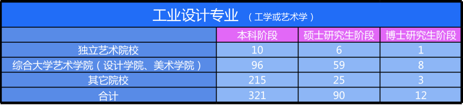 全國工業設計專業設置與學位授予類型(筆者統計截至2021年11月)