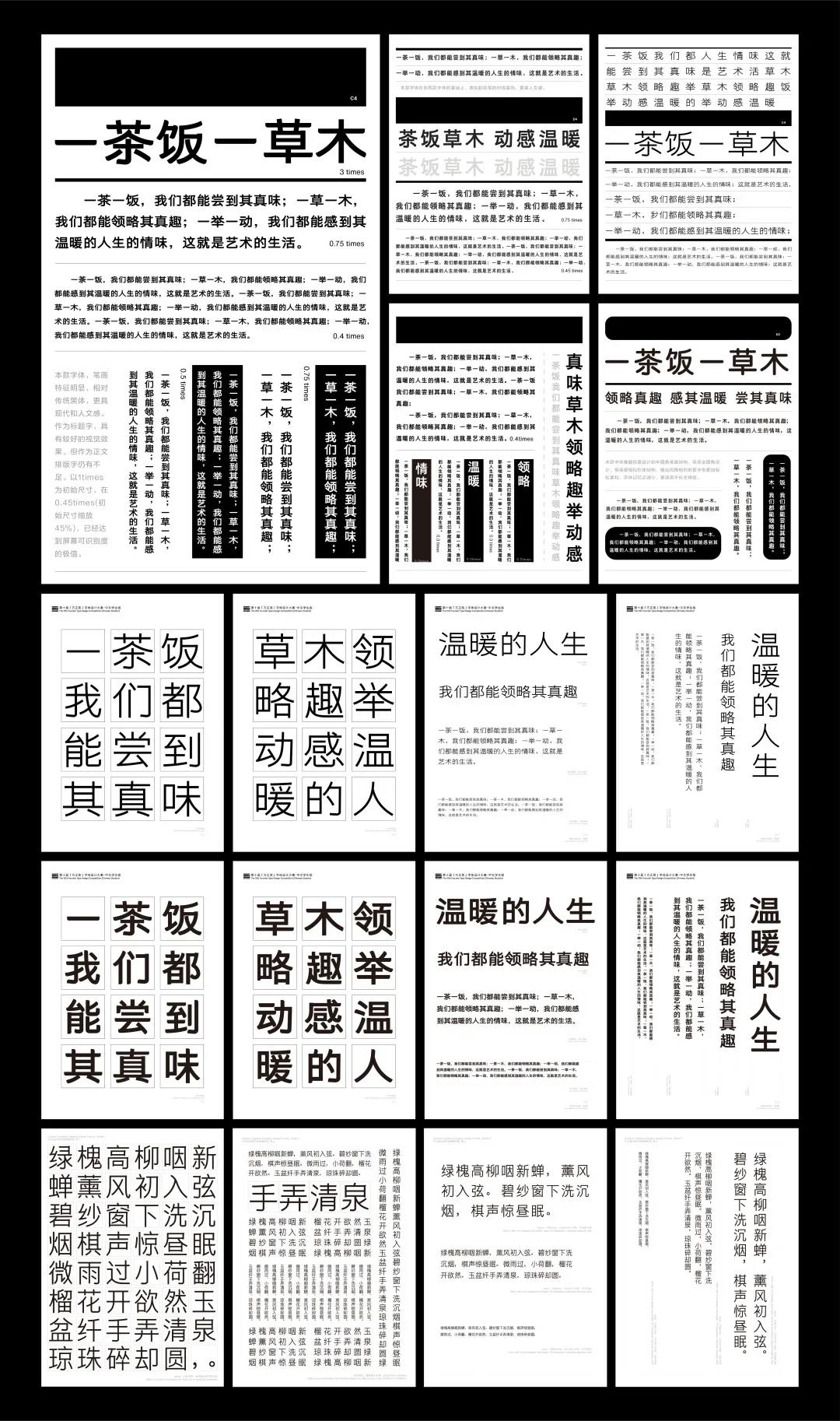 明涵黑體字庫創作設計是以佃杰文黑的字體結構為骨骼藍本設計的細體黑體字,簡化筆畫細節,呈現簡單、純粹的視覺特征,更顯簡靜優雅。明涵黑體作為一款細體黑體字,可用于小面積工業印刷及屏顯場景,適合應用在包裝、廣告等領域。